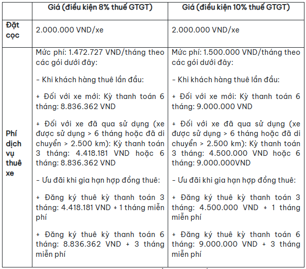 Xe dự kiến sẽ được cho thuê kèm theo 2 pin và 2 sạc tại 19 Cửa hàng Bán xe và Dịch vụ do Honda Ủy nhiệm (HEAD) ở 3 thành phố lớn là Hà Nội, TP.HCM và Đà Nẵng, với mức giá hấp dẫn như sau: